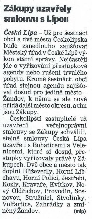 Zákupy uzavřely smlouvu s Lípou